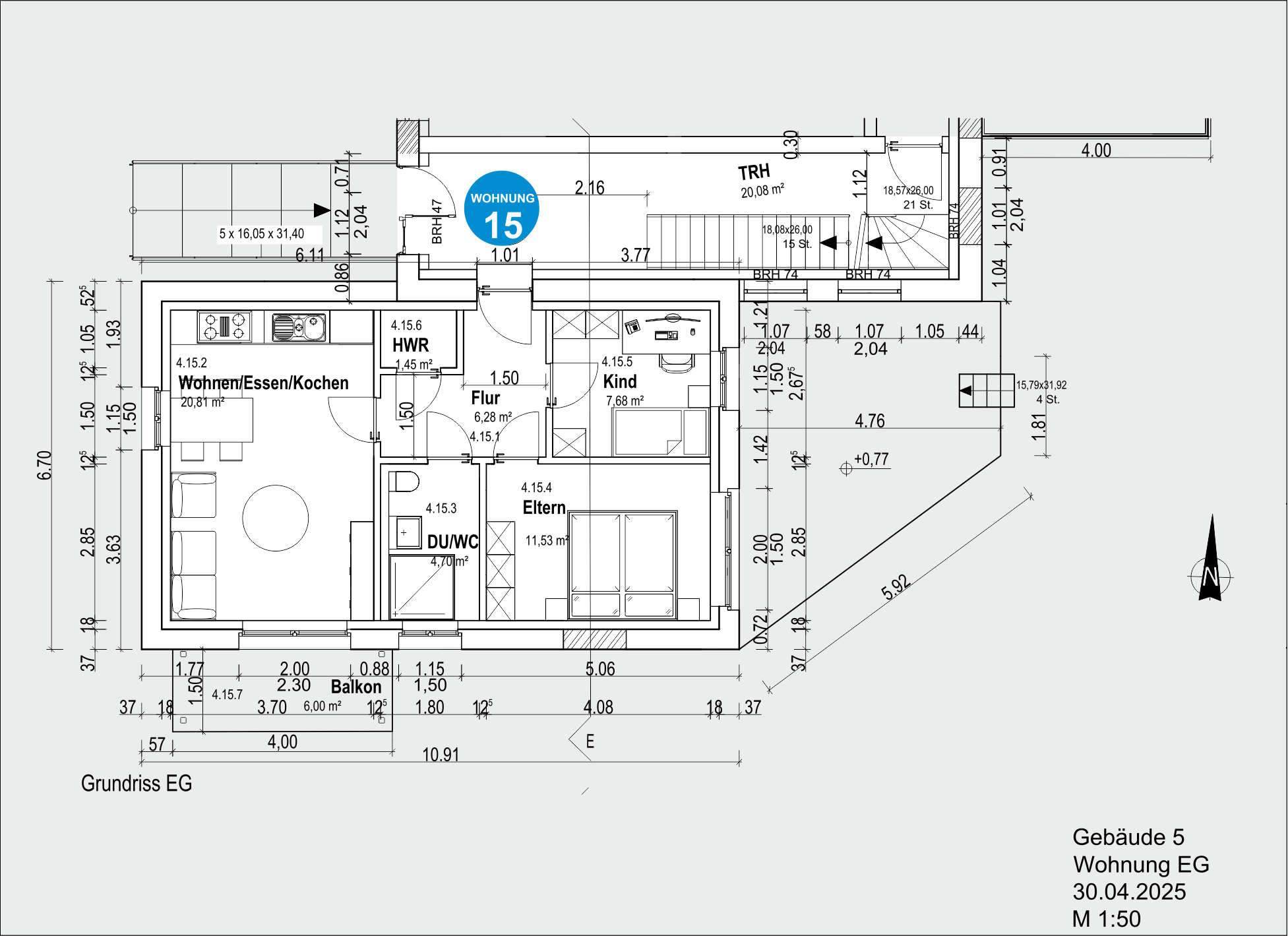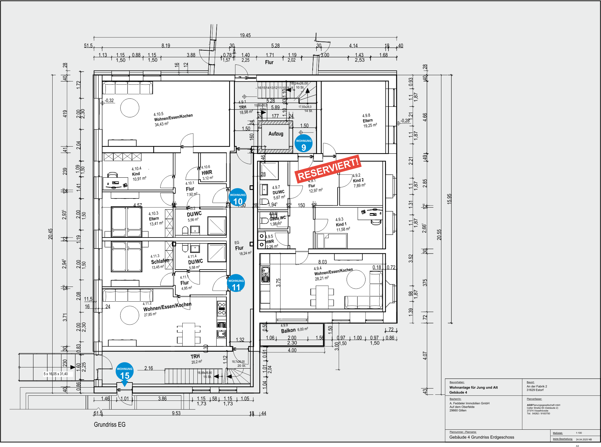 Grundrisse der Wohnungen in den Gebäuden 1 bis 5